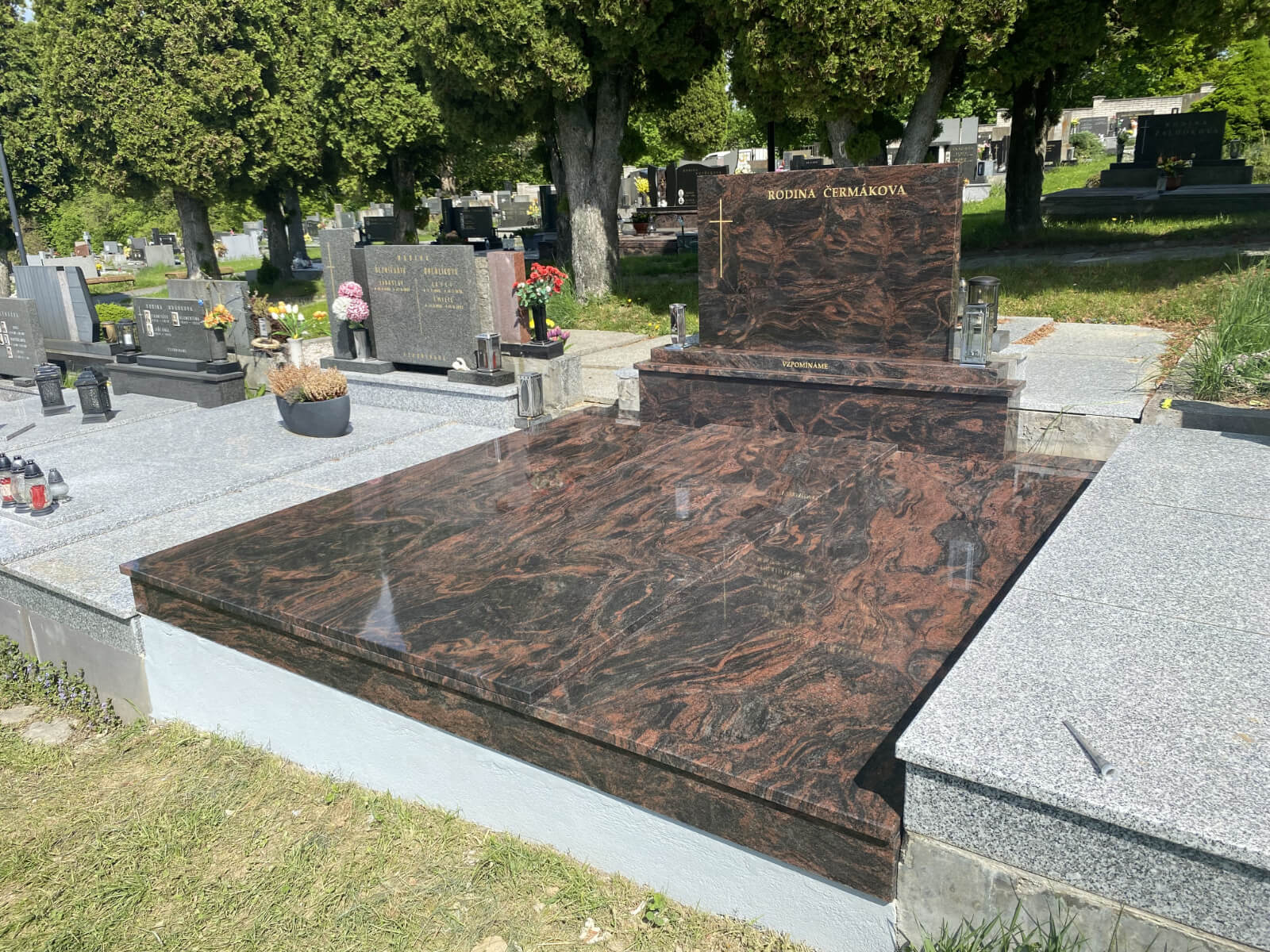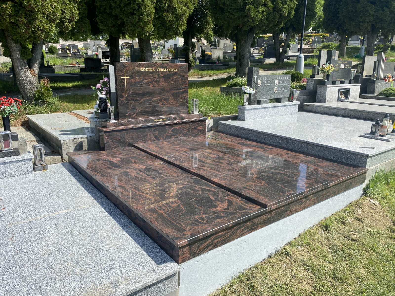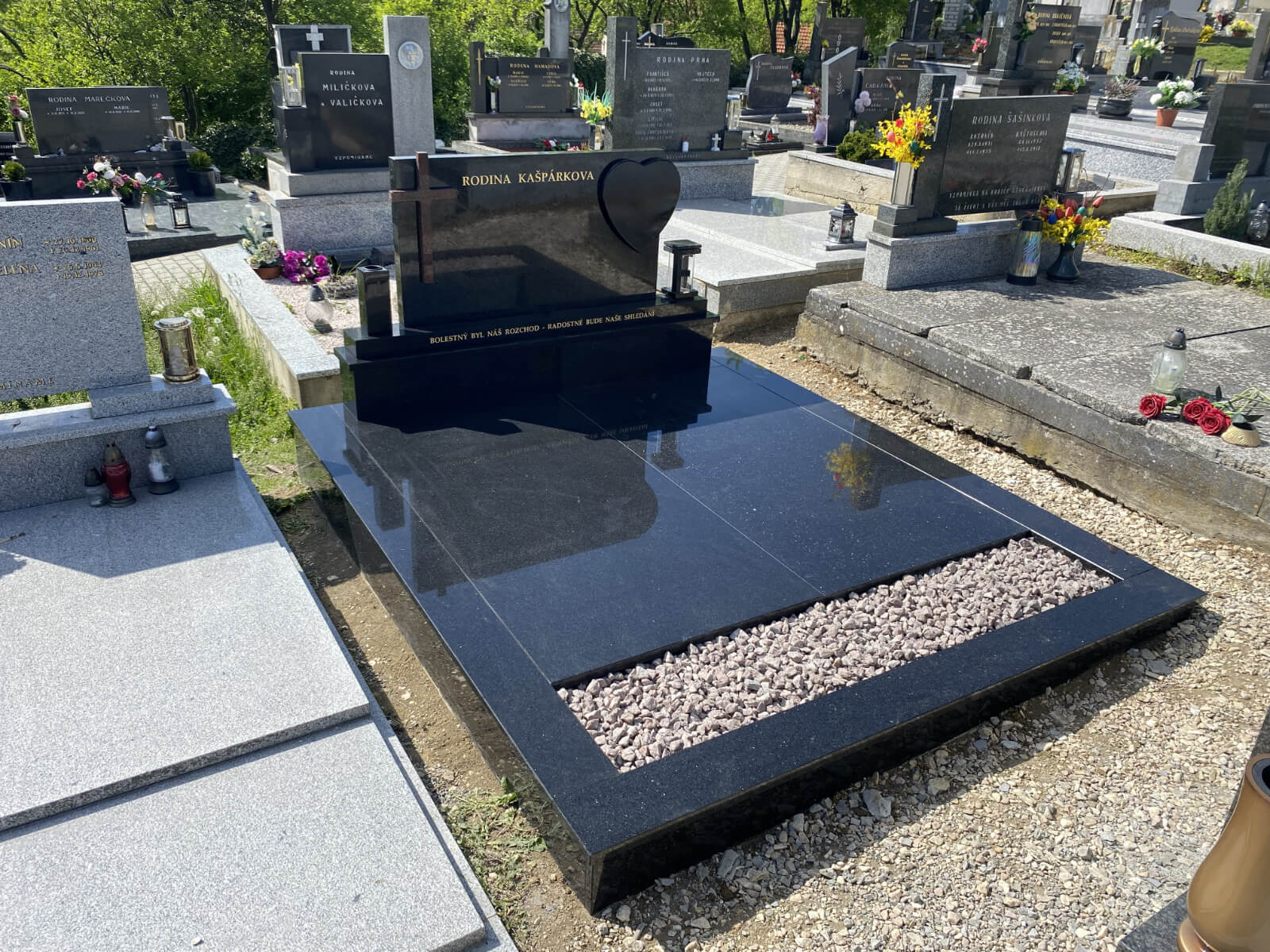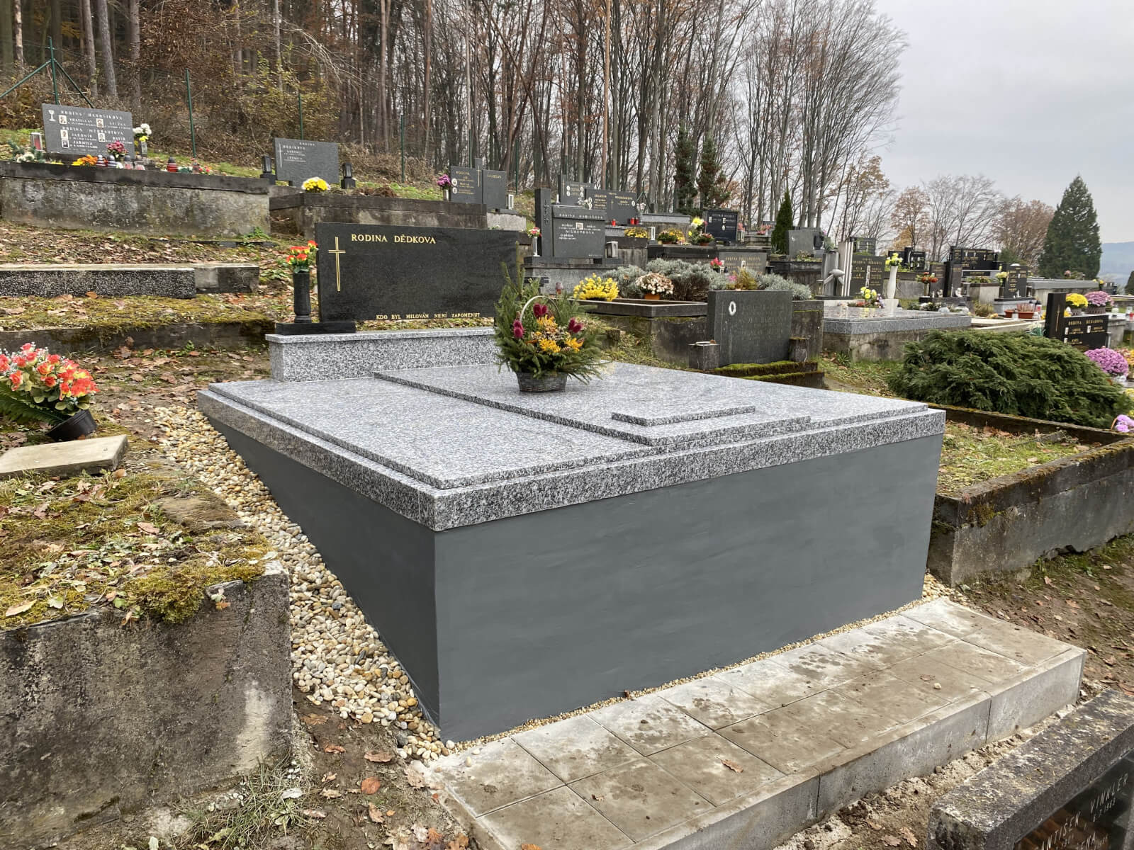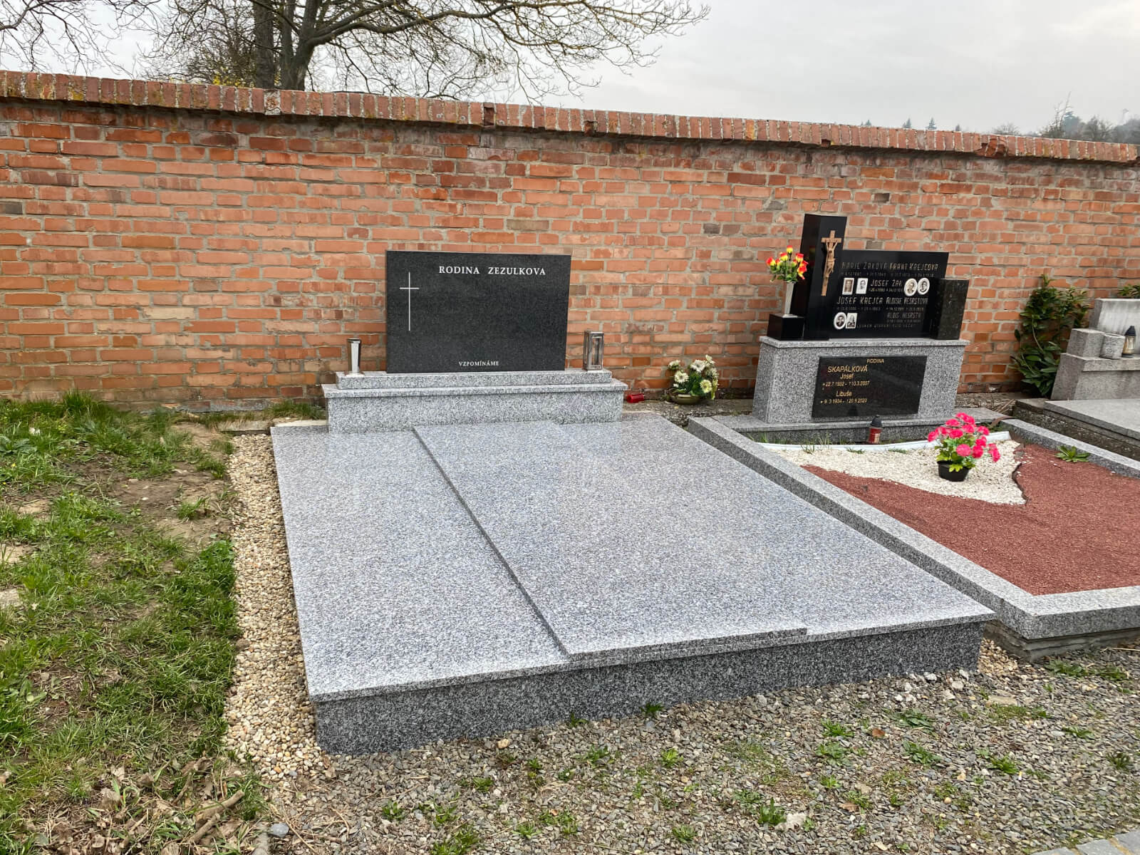Navrhujeme a vyrábíme žulové jednohroby a dvojhroby různých odstínů a tvarů na míru dle individuálních přání zákazníků. Opravujeme také staré pomníky. Pokud pomník vyžaduje jen drobné opravy, dodáváme i samostatné díly pomníků (krycí a nápisové desky, rámy, sokl).