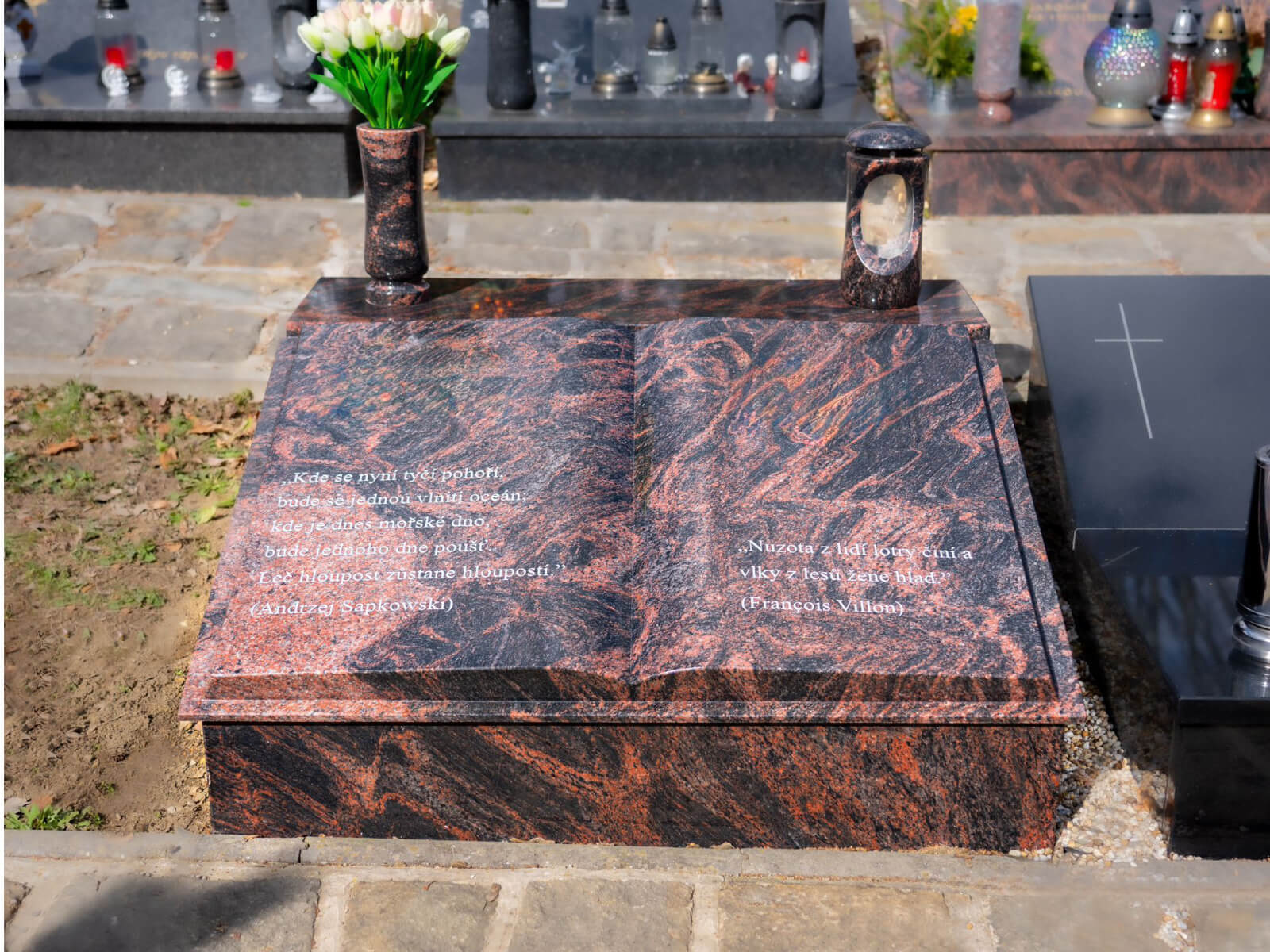 Navrhujeme a vyrábíme žulové urnové pomníky různých odstínů, opracování a tvarů dle individuálních přání zákazníků. Opravujeme také staré pomníky. Pokud pomník vyžaduje jen drobné opravy, dodáváme i samostatné díly pomníků (krycí a nápisové desky, rámy, sokl).